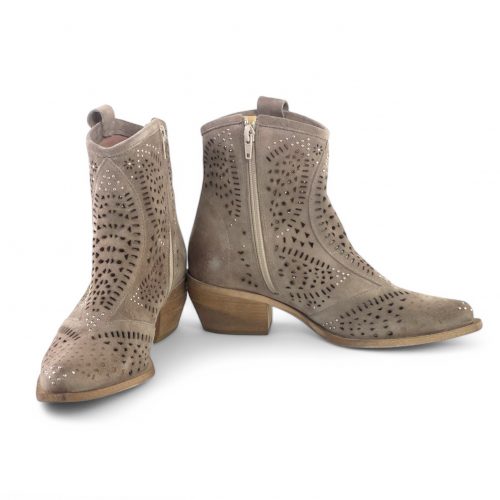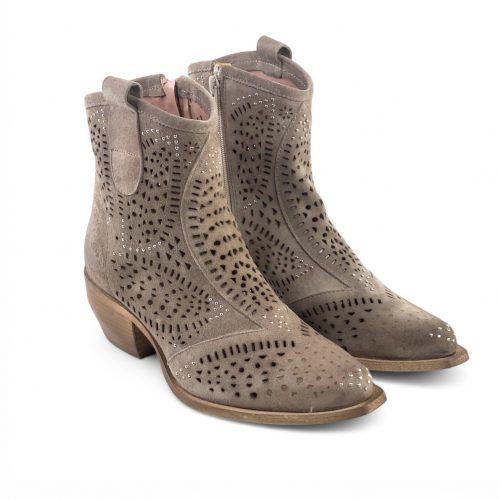 Stivaletto Tex laser in camoscio e borchie (taupe)