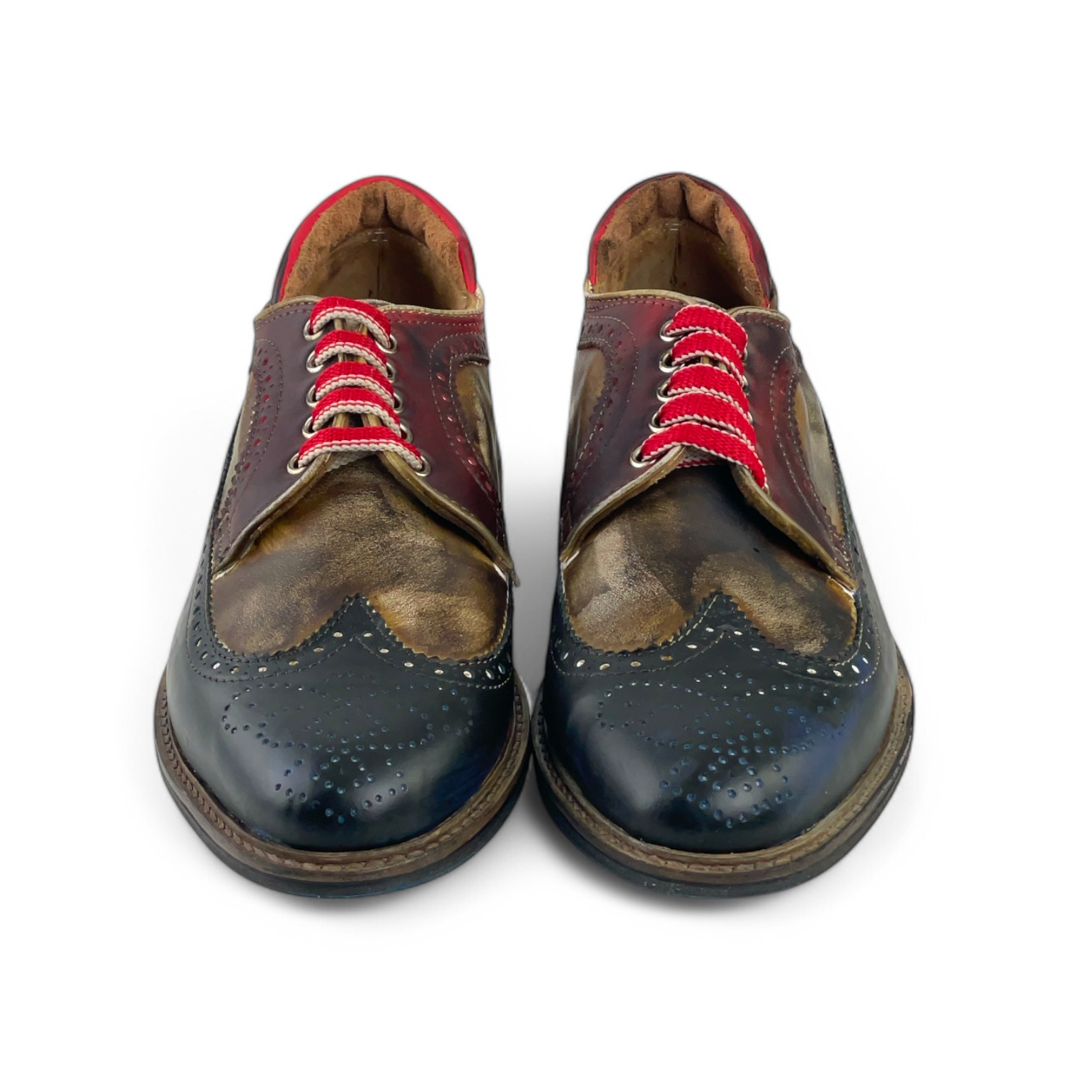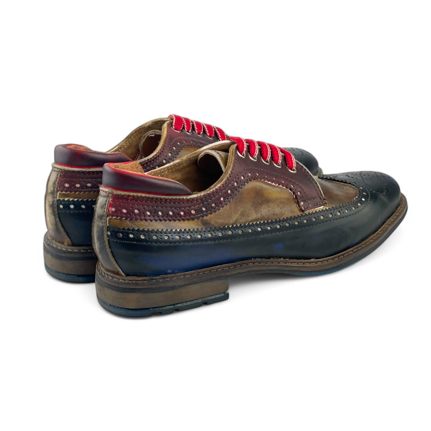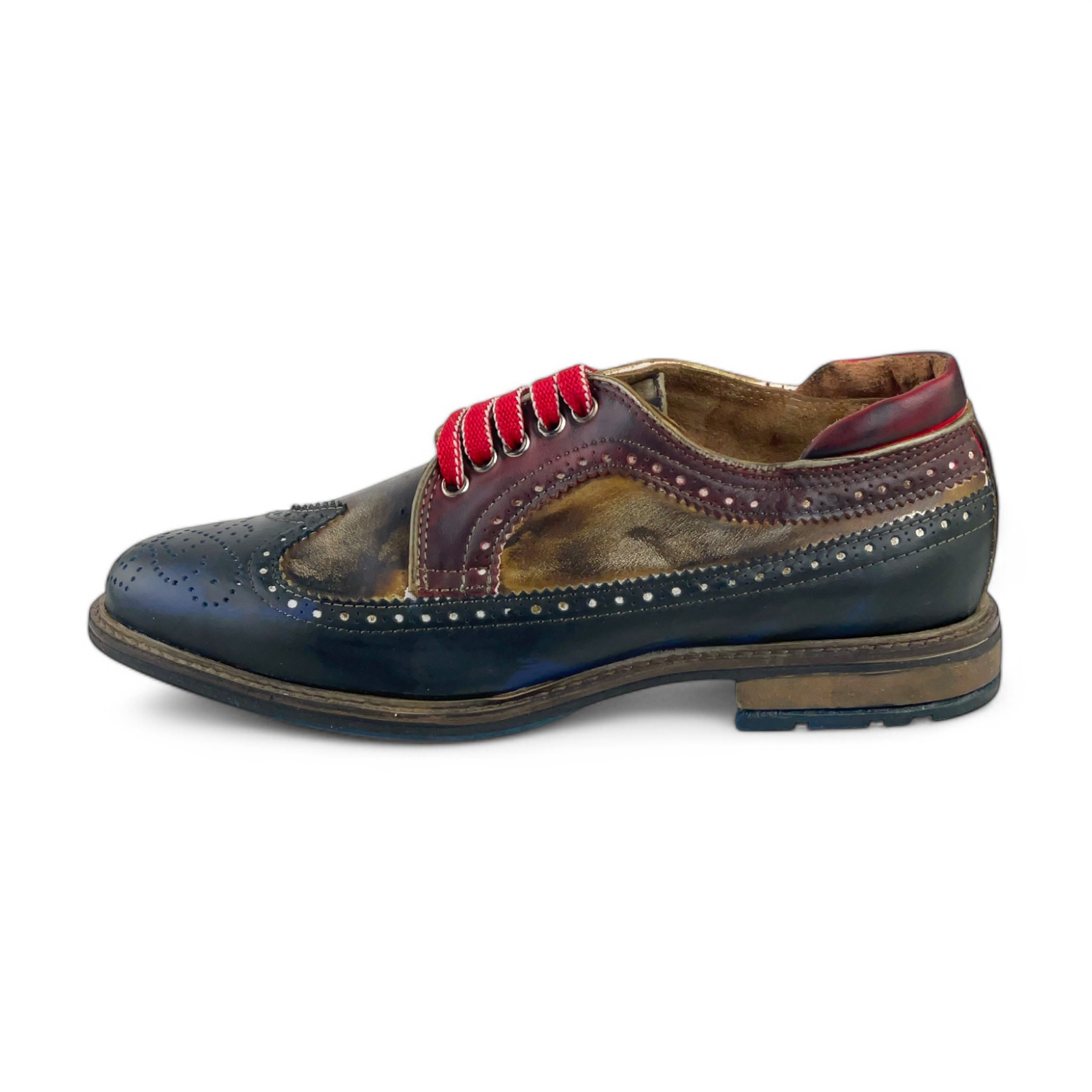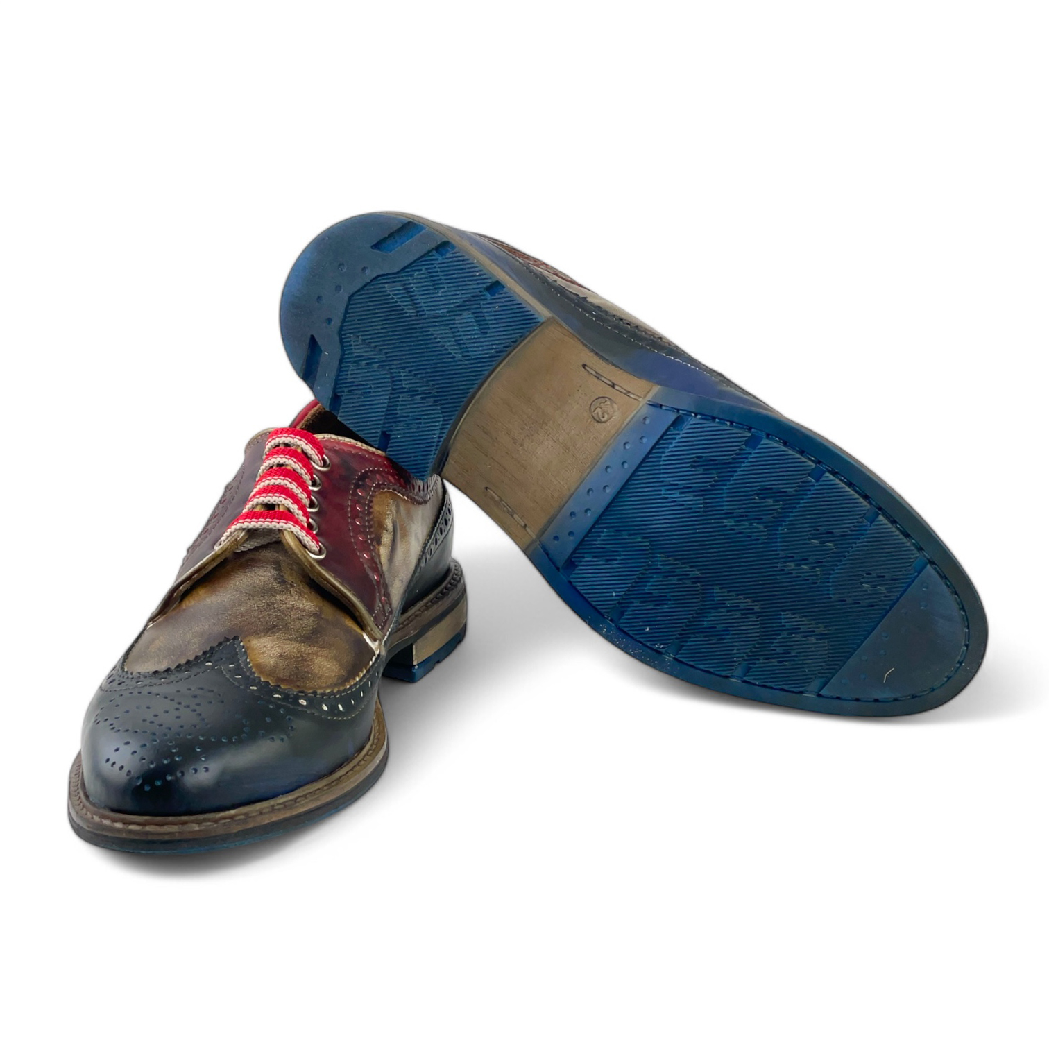 Calzatura Cris in pelle anticata con suola cuoio + gomma (blu + t. moro + bordeaux)
