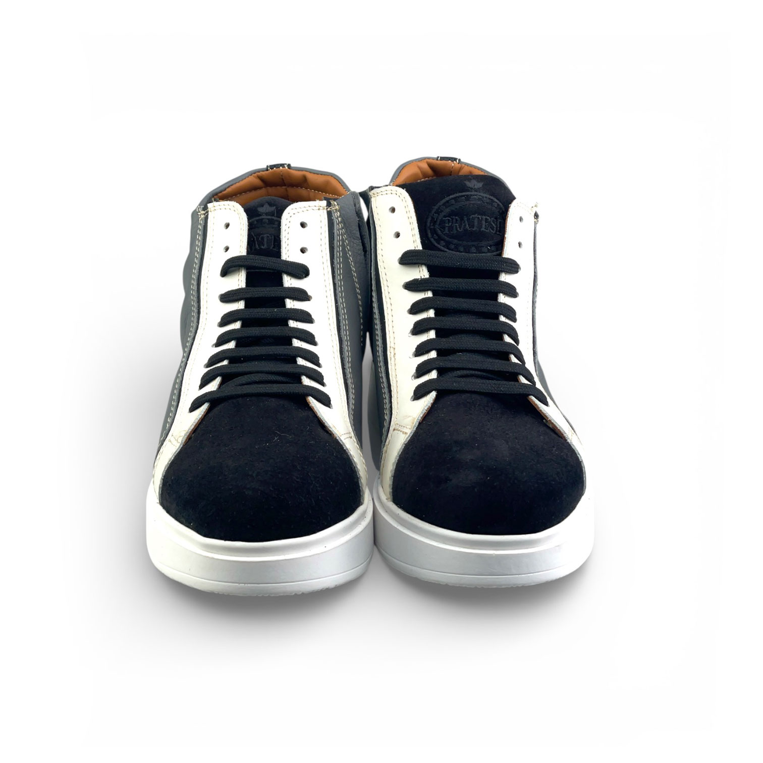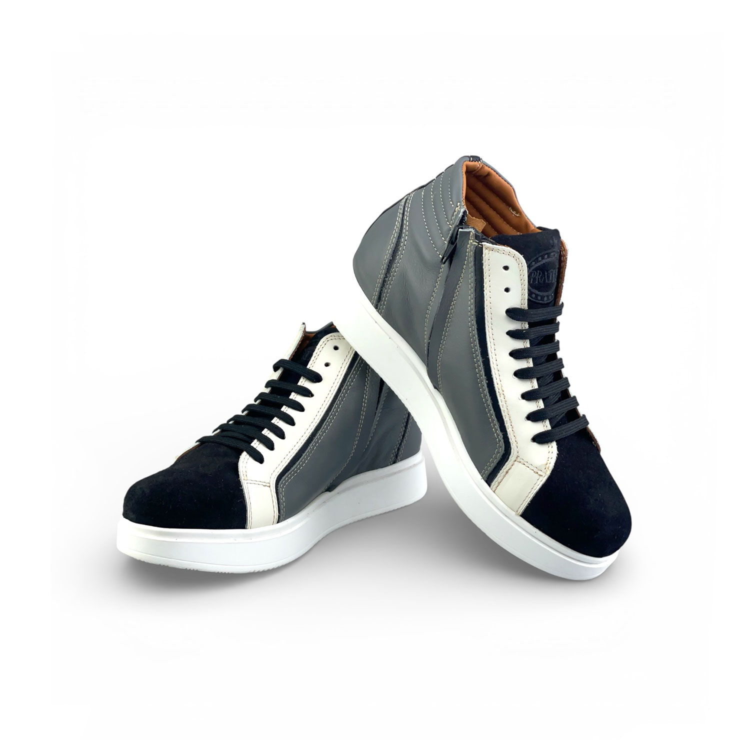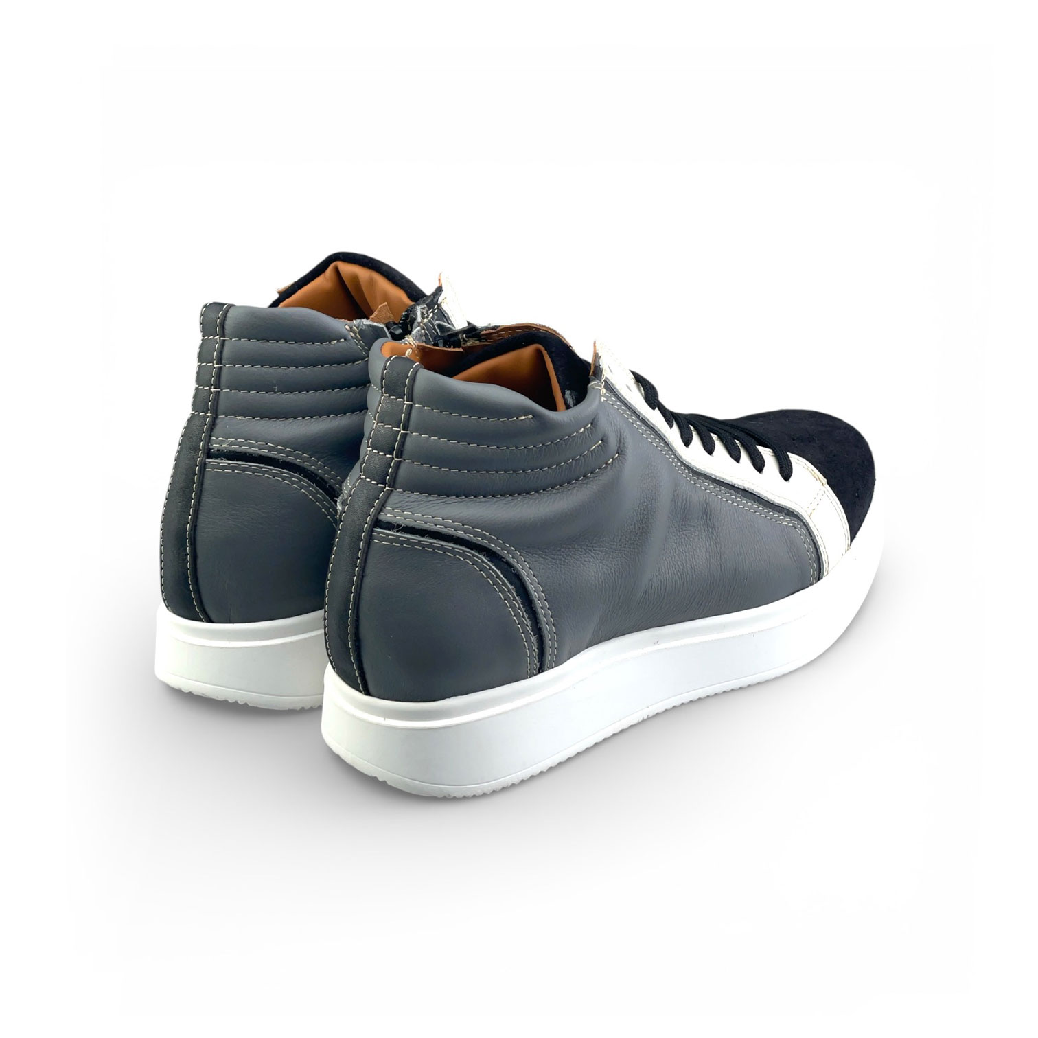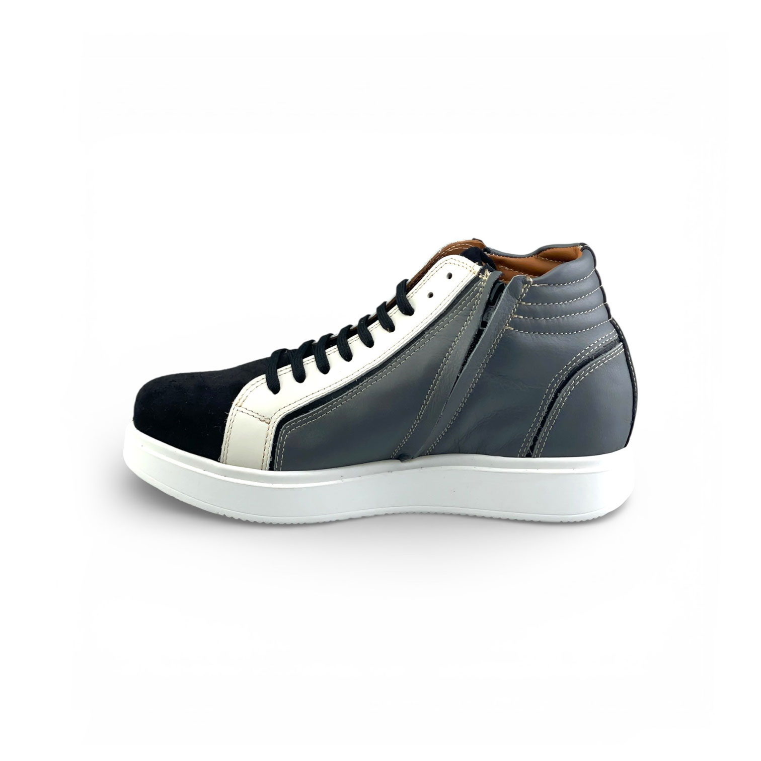 Calzatura George in pelle con apertura zip laterale e con suola in gomma bianca (Nero + Grigio + Bianco)