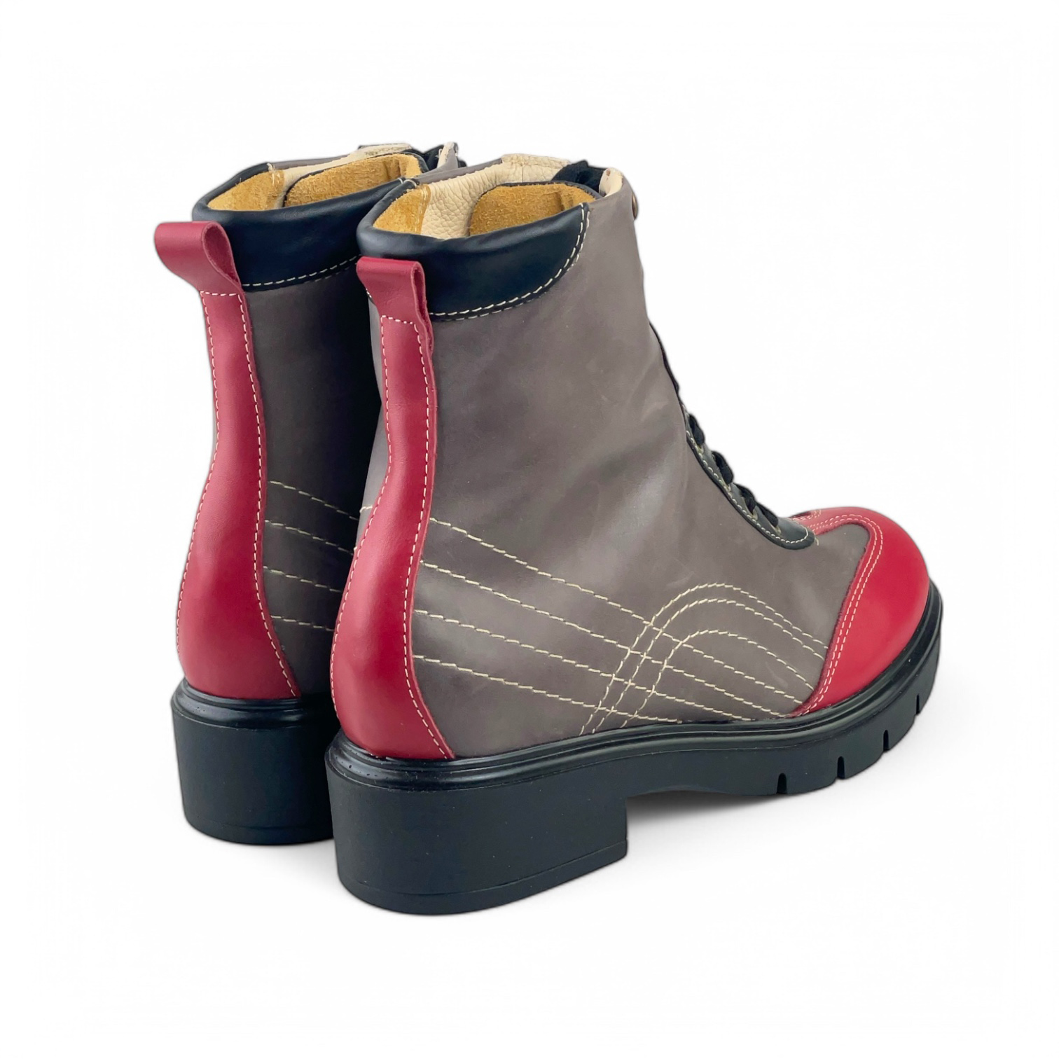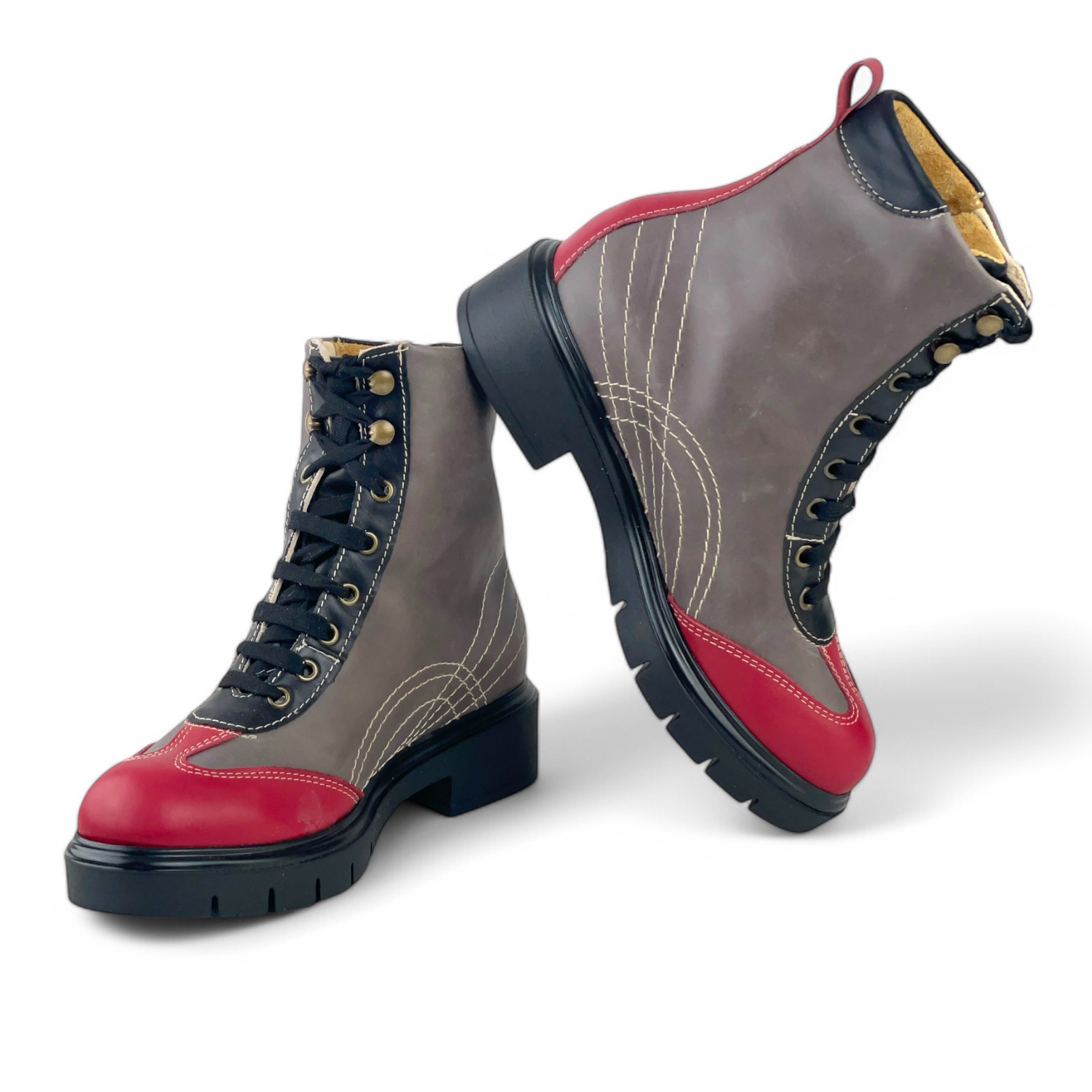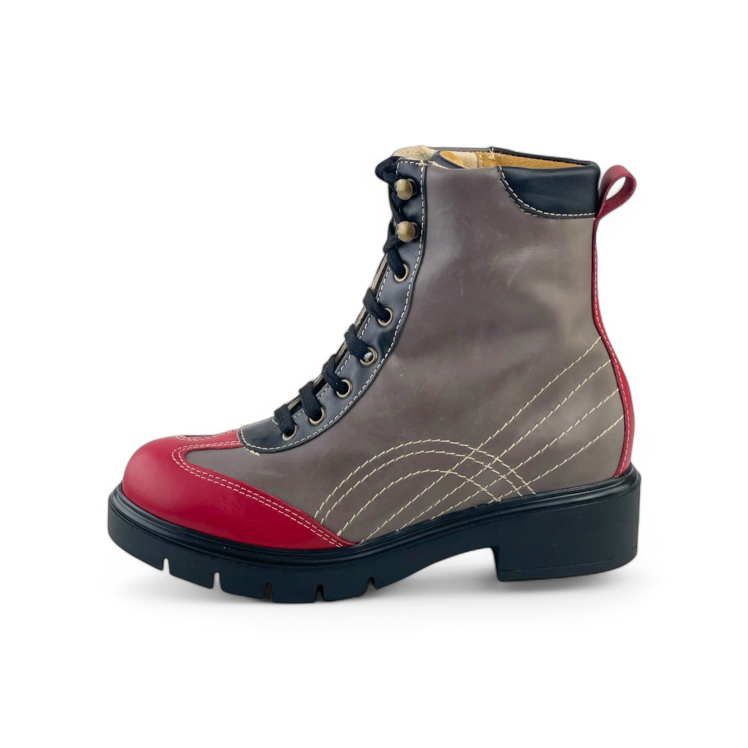 Stivaletto Diana allacciato in pelle suola in gomma (rosso + grigio + nero)